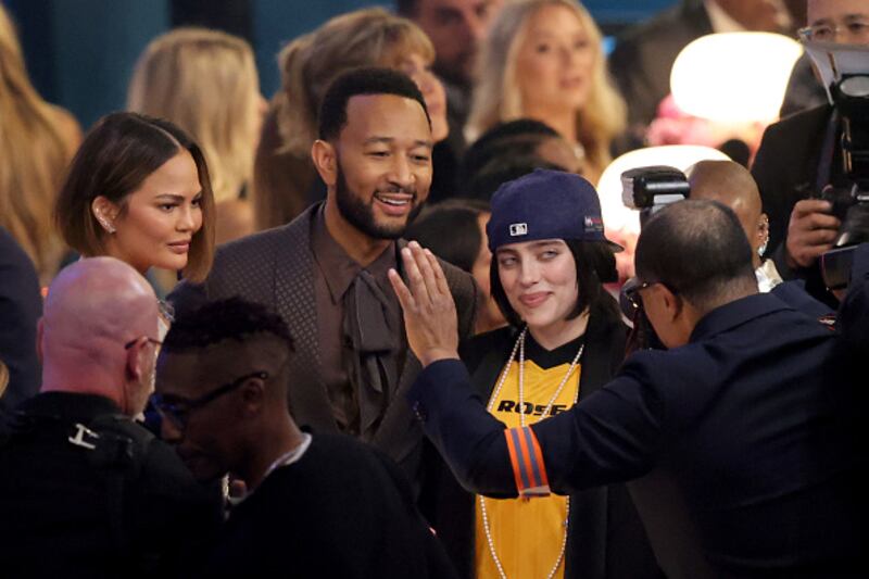 67th GRAMMY Awards - Show LOS ANGELES, CALIFORNIA - FEBRUARY 02: (FOR EDITORIAL USE ONLY) (L-R) Chrissy Teigen, John Legend and Billie Eilish attend the 67th GRAMMY Awards at Crypto.com Arena on February 02, 2025 in Los Angeles, California. (Photo by Amy Sussman/Getty Images) (Amy Sussman/Getty Images)