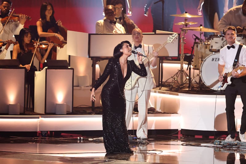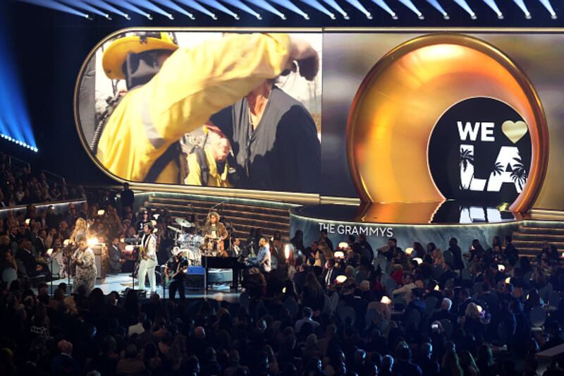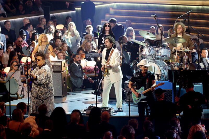 67th GRAMMY Awards - Show LOS ANGELES, CALIFORNIA - FEBRUARY 02: (FOR EDITORIAL USE ONLY) (L-Brittany Howard, Sheryl Crow, St. Vincent, Taylor Goldsmith of Dawes, Brad Paisley and Griffin Goldsmith of Dawes perform onstage during the 67th GRAMMY Awards at Crypto.com Arena on February 02, 2025 in Los Angeles, California. (Photo by Amy Sussman/Getty Images) (Amy Sussman/Getty Images)