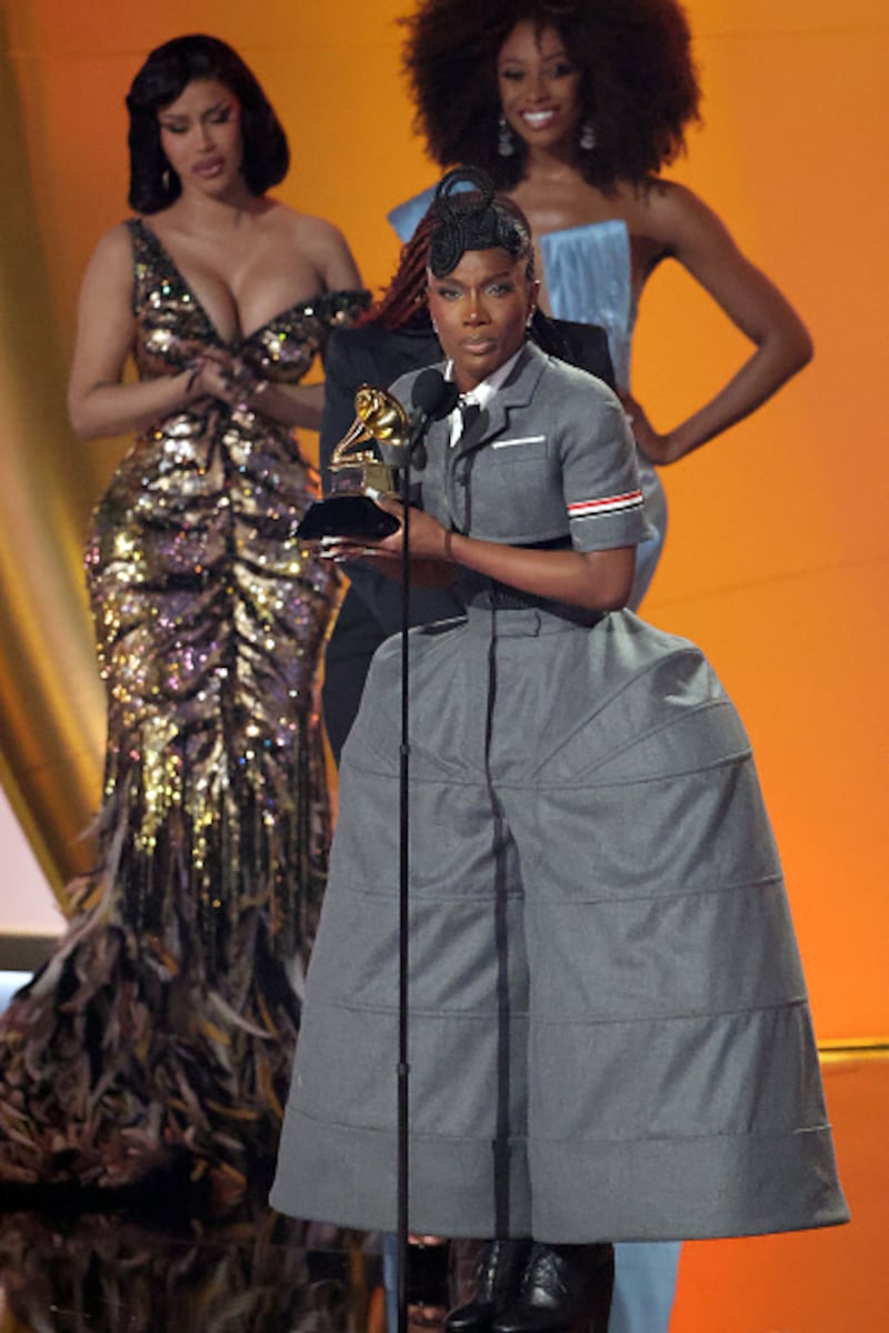 67th GRAMMY Awards - Show LOS ANGELES, CALIFORNIA - FEBRUARY 02: (FOR EDITORIAL USE ONLY) Doechii (C) accepts the Best Rap Album award for "Alligator Bites Never Heal" from Cardi B onstage during the 67th GRAMMY Awards at Crypto.com Arena on February 02, 2025 in Los Angeles, California. (Photo by Amy Sussman/Getty Images) (Amy Sussman/Getty Images)
