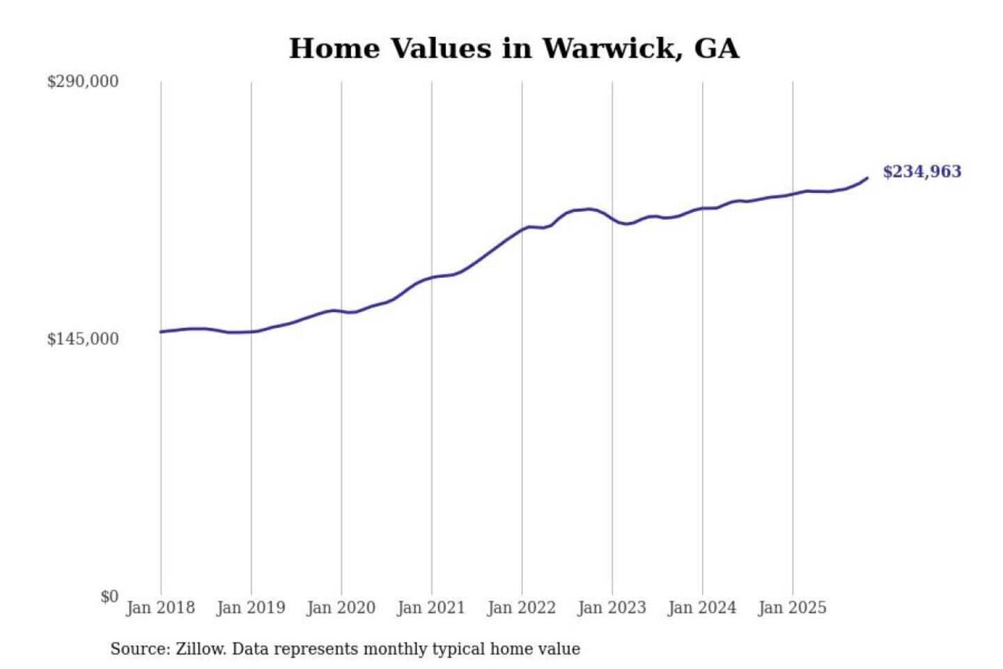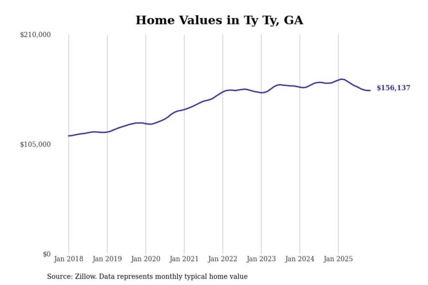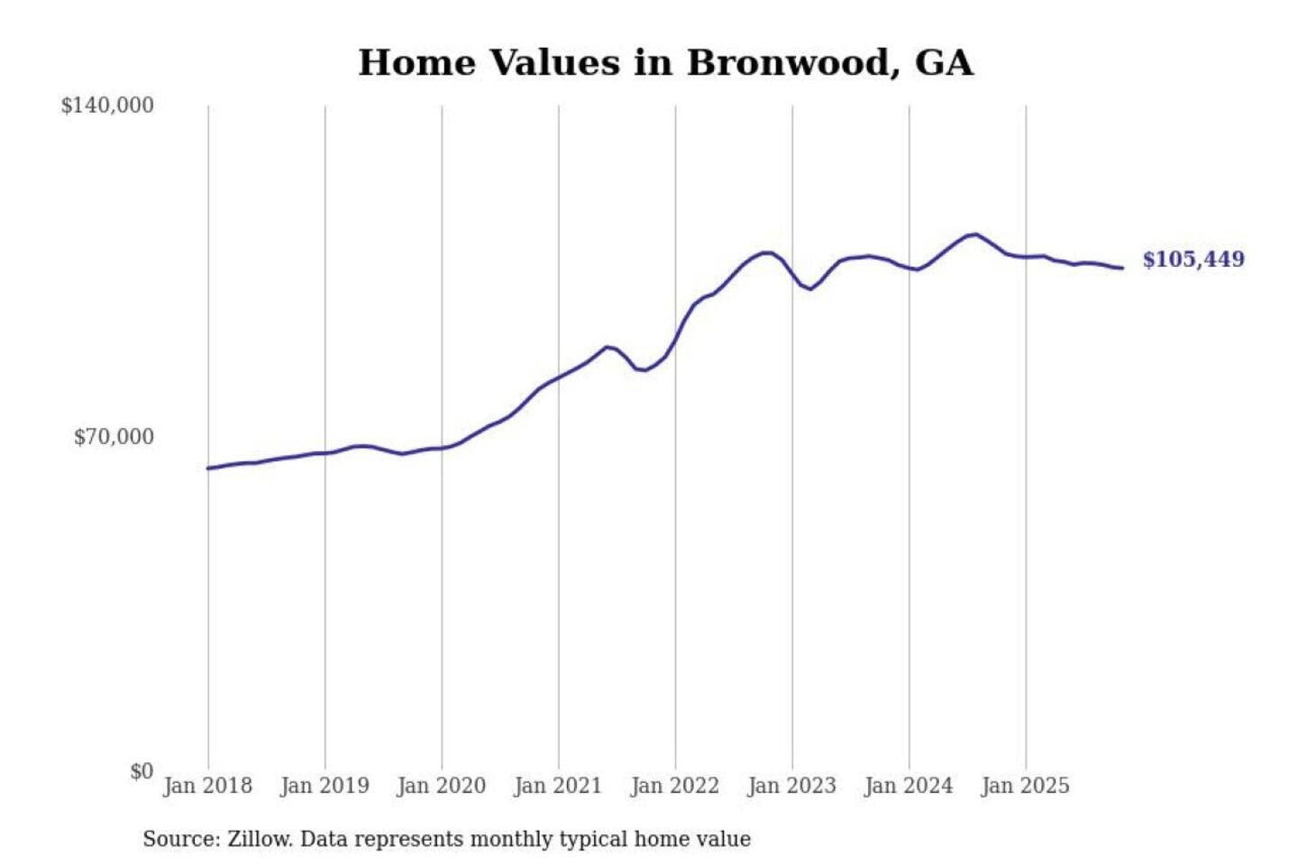 Stacker compiled a list of cities with the most expensive homes in the Albany, GA metro area using data from Zillow. Charts show the monthly typical home value since January 2018.