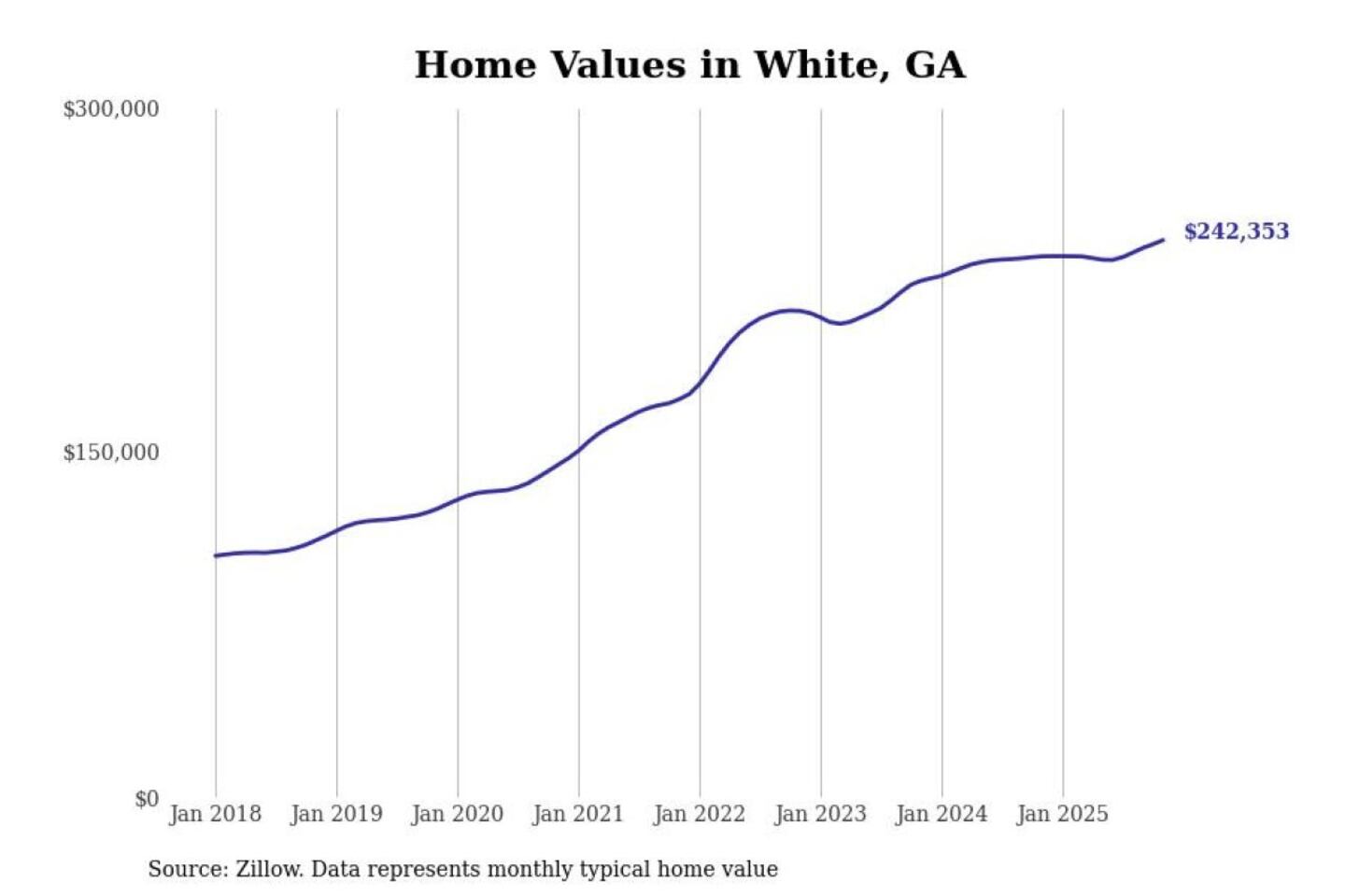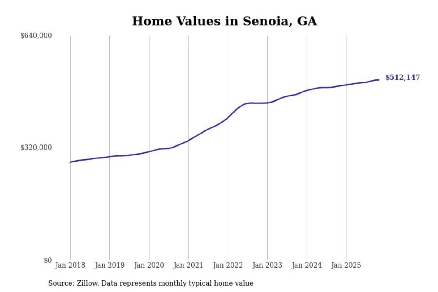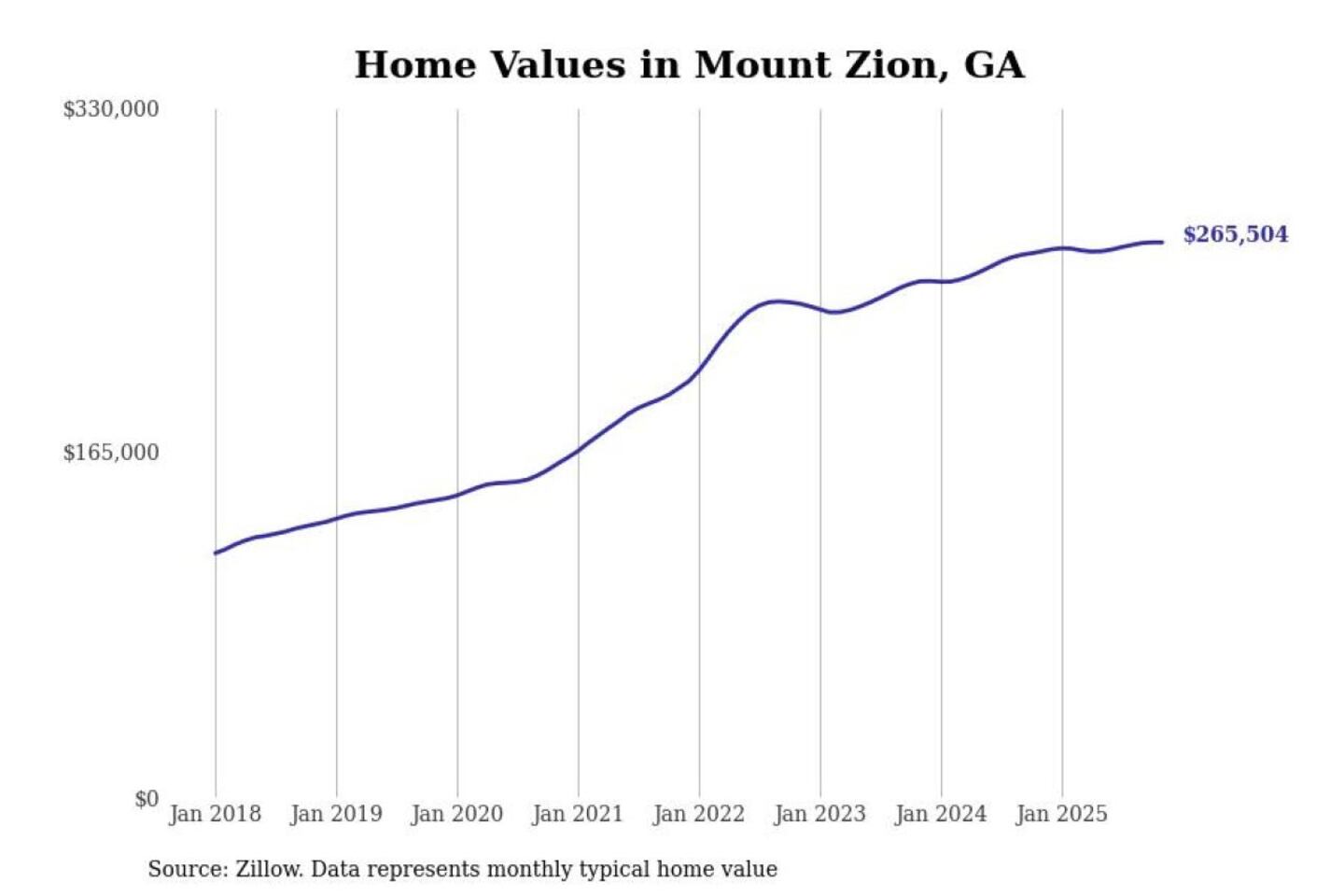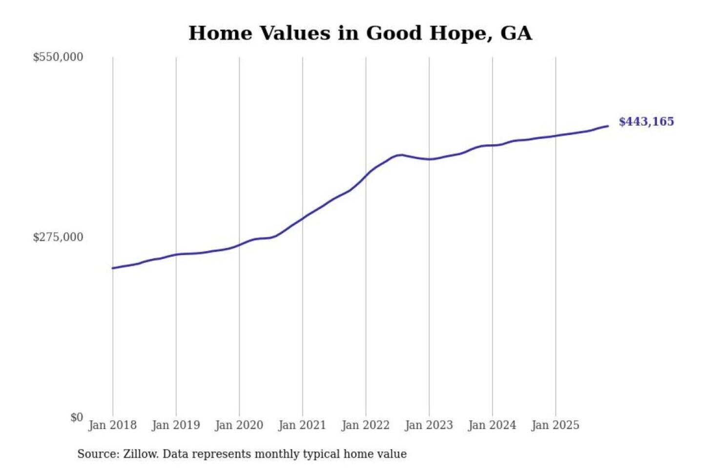 Stacker compiled a list of cities with the most expensive homes in the Atlanta-Sandy Springs-Alpharetta, GA metro area using data from Zillow. Charts show the monthly typical home value since January 2018.