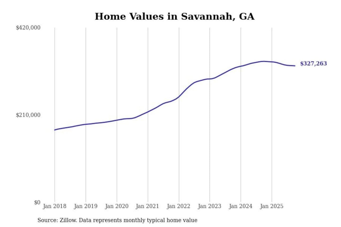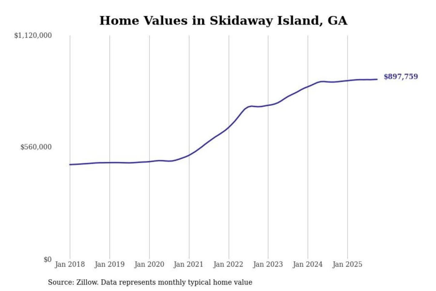 Stacker compiled a list of cities with the most expensive homes in the Savannah, GA metro area using data from Zillow. Charts show the monthly typical home value since January 2018.