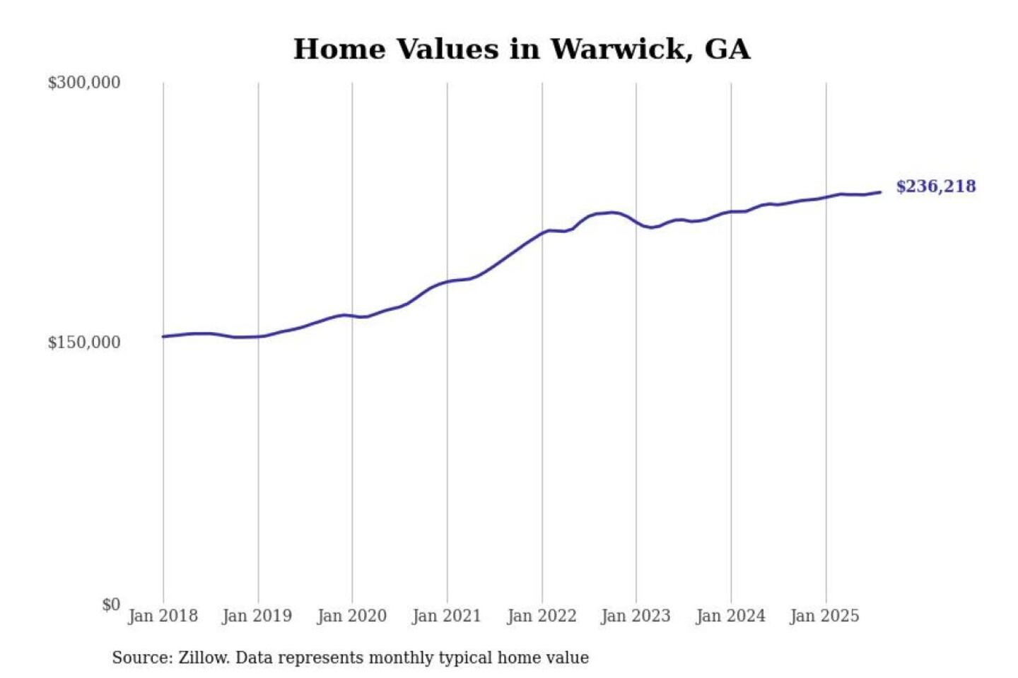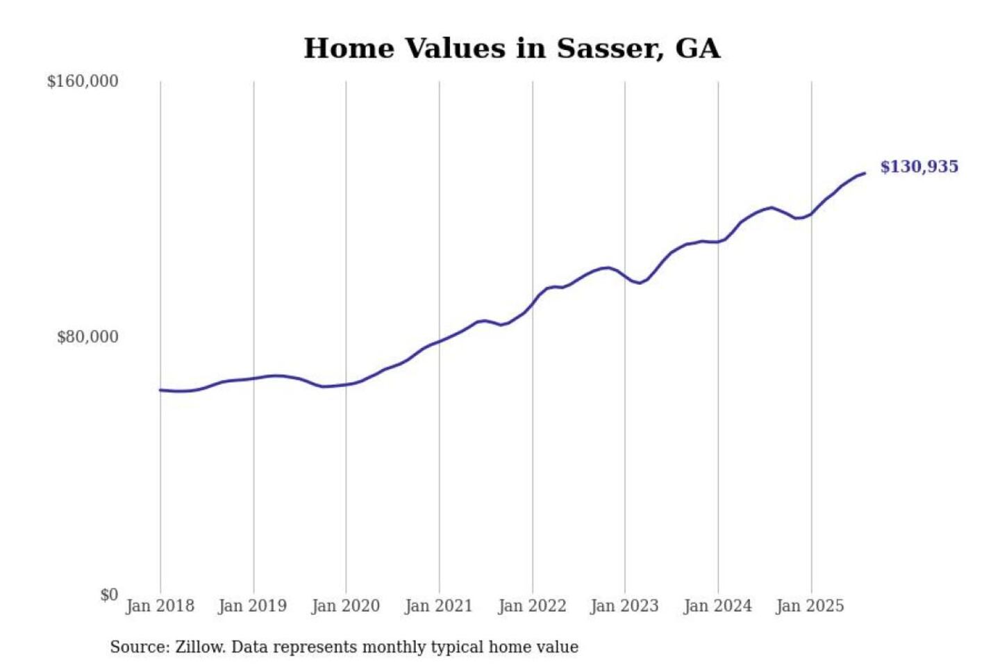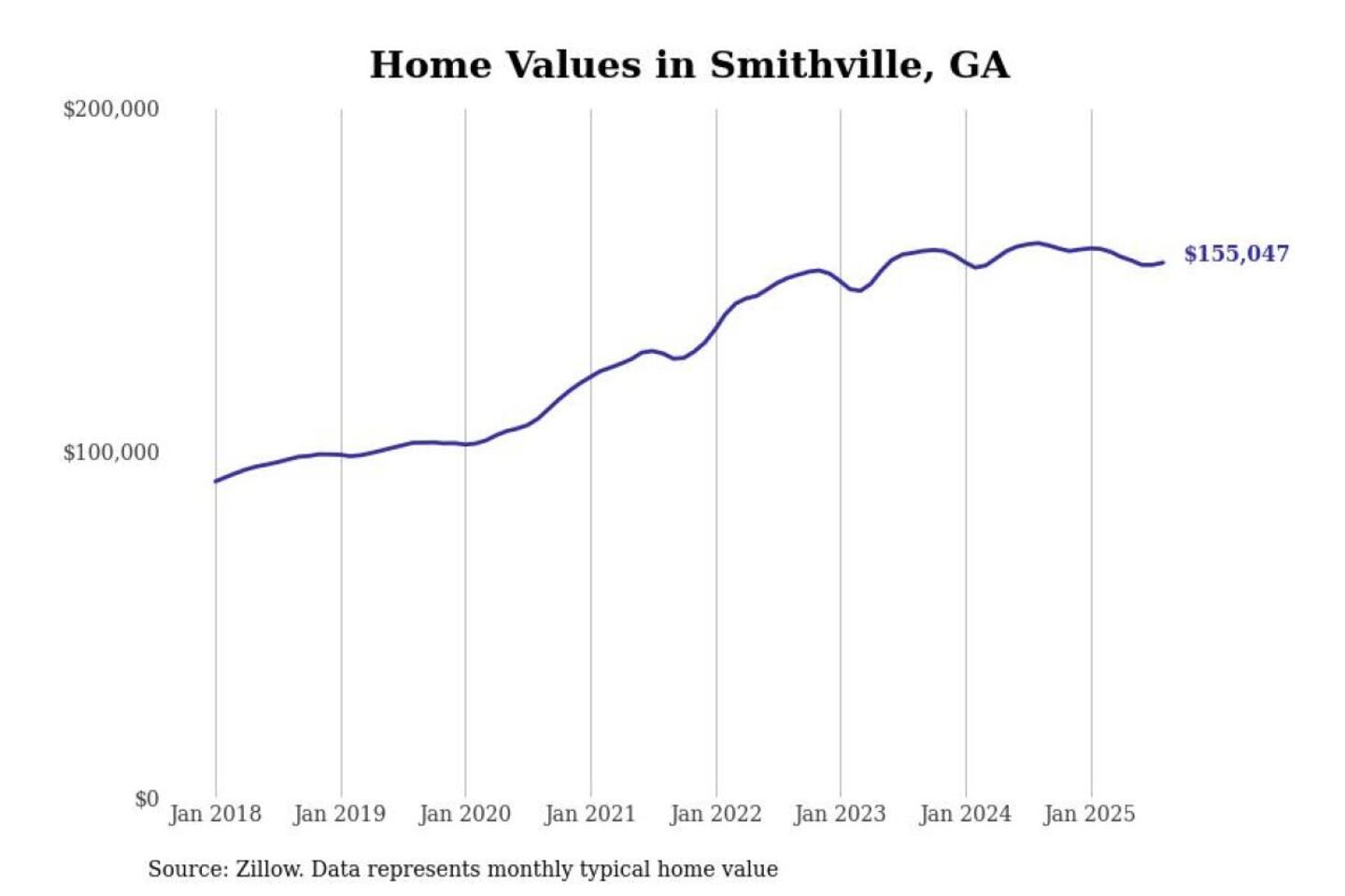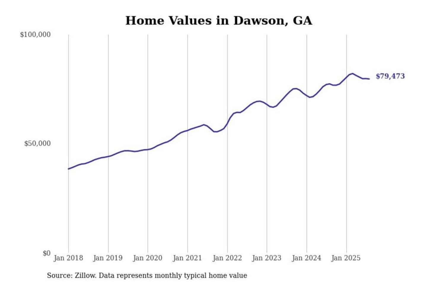 Stacker compiled a list of cities with the most expensive homes in the Albany, Georgia metro area using data from Zillow. Charts show the monthly typical home value since January 2018. All 13 cities and towns with data available were included in the list.