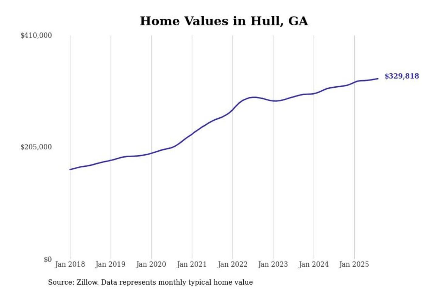 Stacker compiled a list of cities with the most expensive homes in the Athens metro area using data from Zillow. Charts show the monthly typical home value since January 2018. All 17 cities and towns with data available were included in the list.