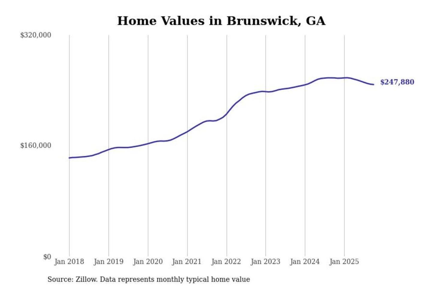 Stacker compiled a list of cities with the most expensive homes in the Brunswick metro area using data from Zillow. Charts show the monthly typical home value since January 2018. All 9 cities and towns with data available were included in the list.