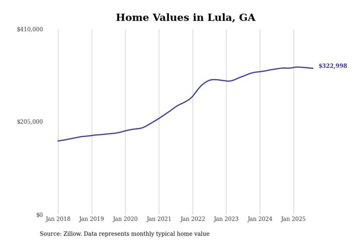 Stacker compiled a list of cities with the most expensive homes in the Gainesville, Georgia metro area using data from Zillow. Charts show the monthly typical home value since January 2018. All 7 cities and towns with data available were included in the list.