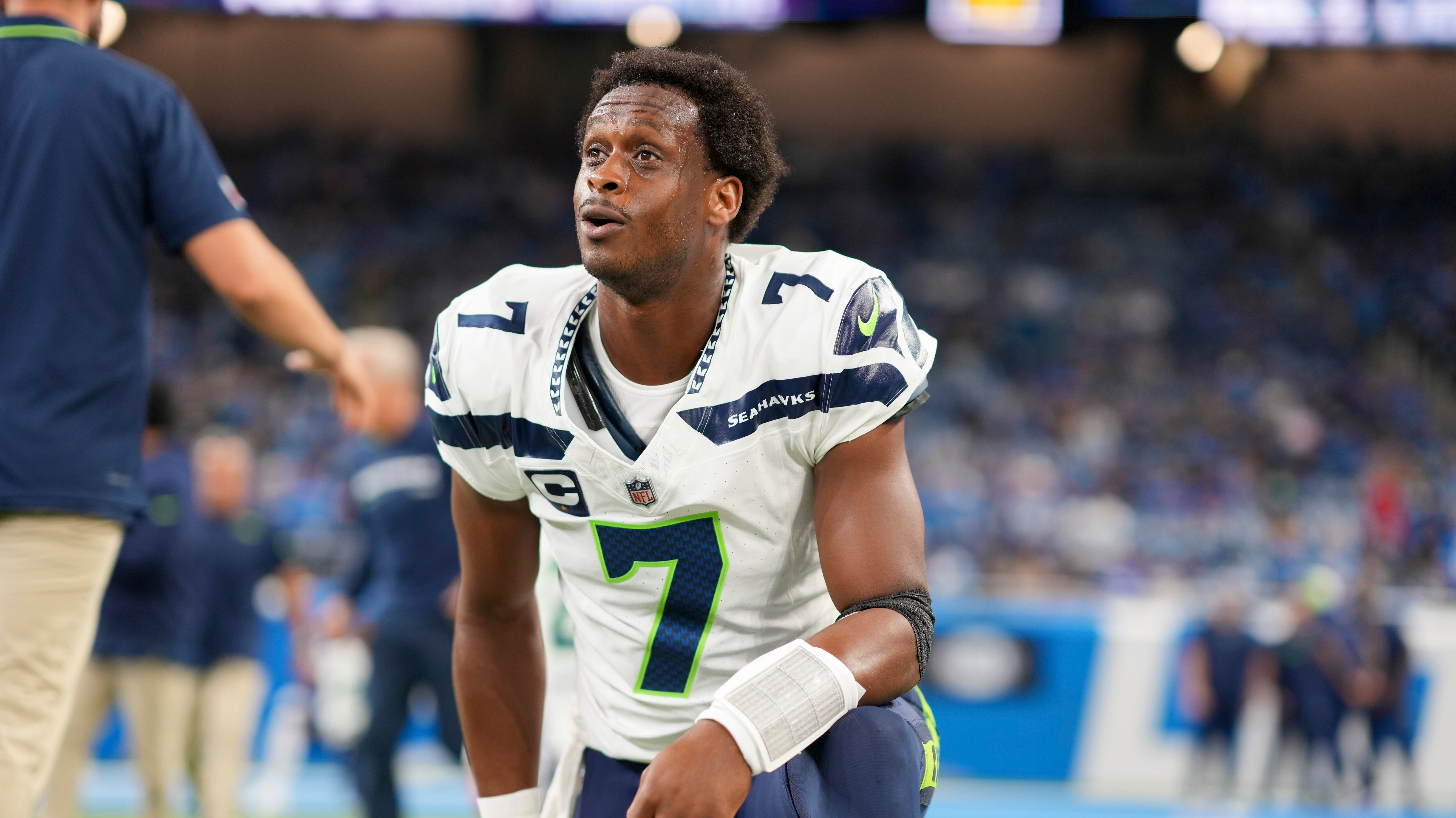 Smith, the Seattle Seahawks quarterback, was called for intentional grounding. Smith didn't agree. as Kemp was announcing the penalty, Smith argued his case. He felt his receiver was close enough to the pass to not trigger the penalty flag.