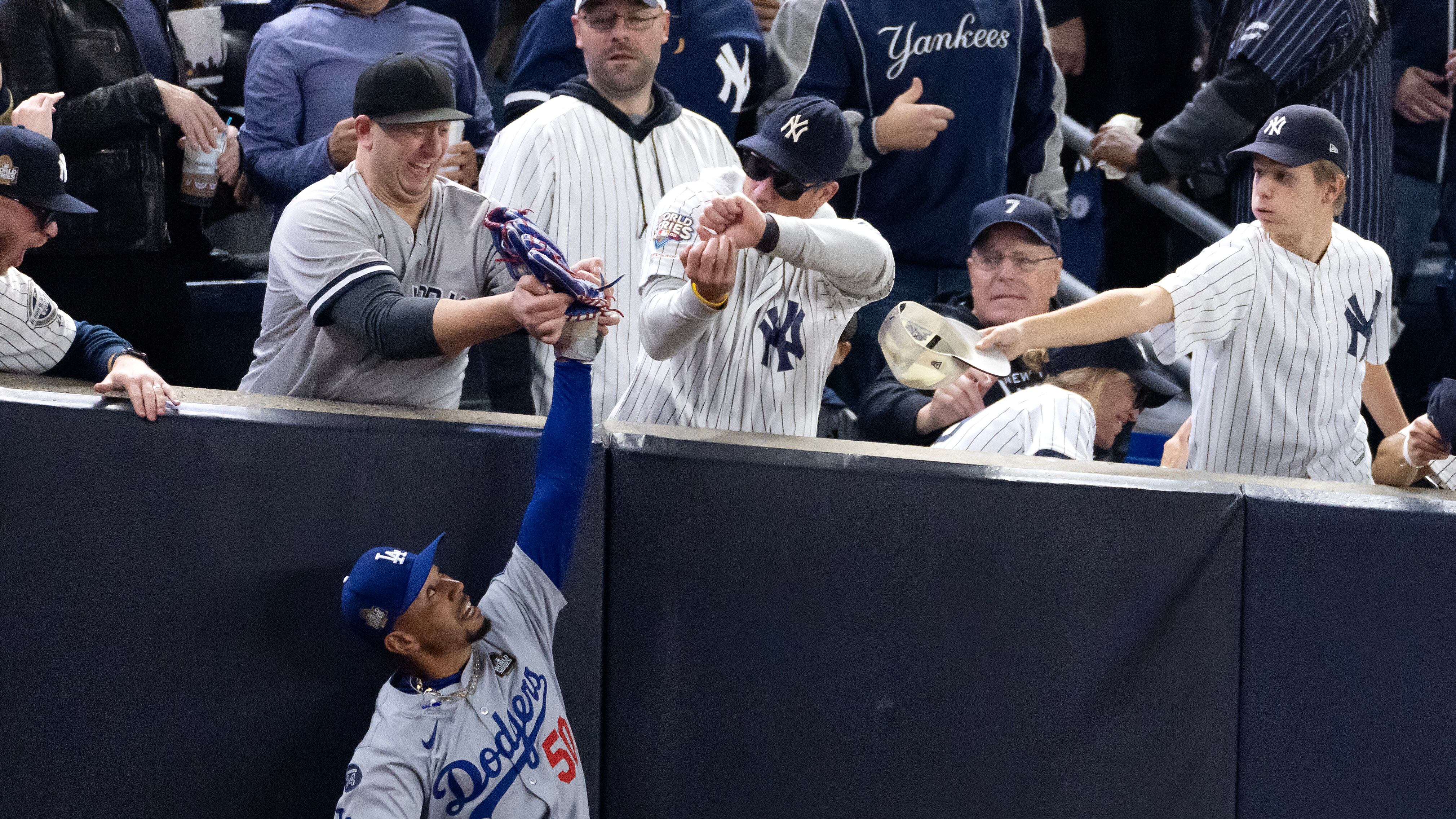 The sports world is still buzzing about the Yankees fans who tried to pull off Mookie Betts' glove in Game 4 of the World Series, and it turns out there's an unusual connection. In a classic pairing of like-meets-like, one of those interfering Yankees fans is apparently college friends with none other than former NFL tight end Rob Gronkowski.