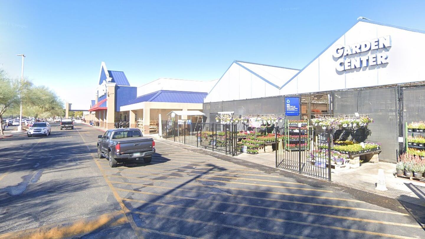 The final portion of the footage shows the shooting from just inside the garden center entrance to Lowe’s. A female employee sits on a stool just inside the fence, her arms casually crossed across her chest.