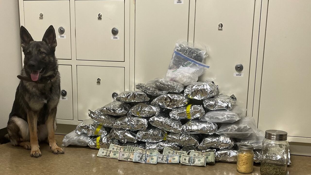 During the search, Maverick alerted his handler, Deputy Luke Jacques, to a package that contained more than a pound of cocaine, KSTP-TV reported. Officers also recovered 29 pounds of marijuana and more than $35,000 in cash, according to the television station.
